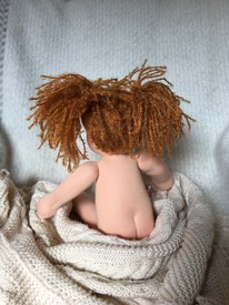 Die Haare stehen ganz nach Bedarf der zukünftigen Eltern entweder aus feinstem Mohairgarn, in glatter Qualität oder mit Löckchen, aus Mohairfellgewebe oder Baumwollgarn.